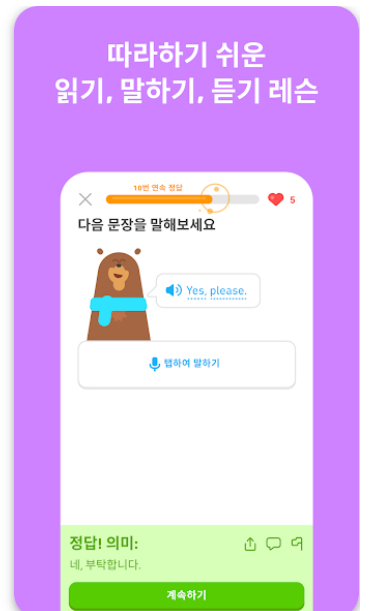 “광고가 조금 있지만 무료로 이 정도 기능을 쓸 수 있다는 게 놀라워요. 발음 연습 기능도 꽤 유용합니다.”