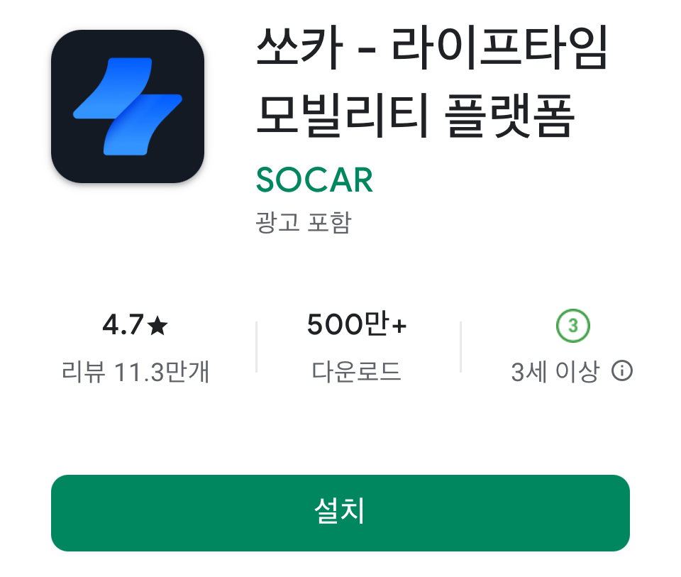쏘카 앱은 구글 플레이스토어와 애플 앱스토어에서 무료로 다운로드할 수 있습니다. 앱 설치 후 회원가입을 하고 본인 인증을 완료하면 바로 차량 예약이 가능합니다.