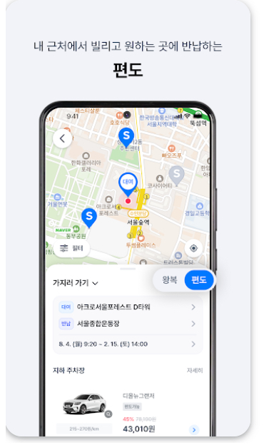 • 앱 제어 기능: 차량 문 열기, 반납 연장 등 모든 과정을 앱으로 간편하게 처리