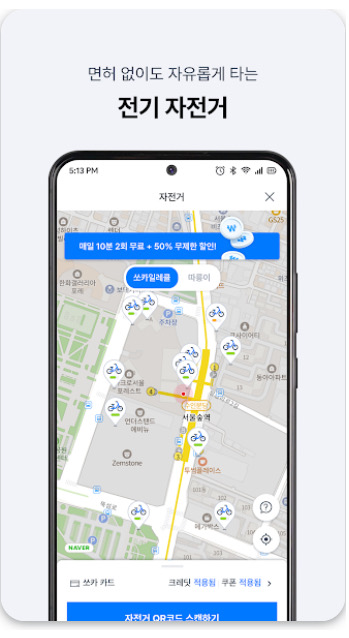• 전기 자전거 서비스: 단거리 이동에 적합한 쏘카일레클 지원
