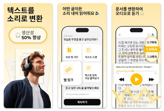 - 다양한 파일 지원: PDF, 문서, 이미지, ePub 등 파일을 음성으로 변환