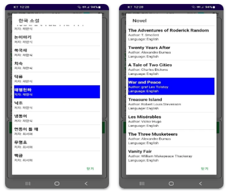 TTS 리더는 일반적인 TTS 기능과 함께 소설 콘텐츠가 포함된 독특한 앱입니다. 한국 소설과 외국 원서가 내장되어 있어 텍스트를 들으며 독서할 수 있으며, 영어 학습용 텍스트도 포함되어 있습니다.