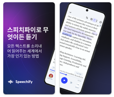 2. 문자 음성변환 어플 : Speechify 오디오 음성화