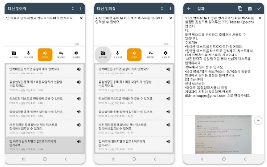 - "대신 읽어줘 앱은 사진이나 음성 입력으로 텍스트를 추가하고 리스트로 관리하며, 반복 재생까지 지원해 일상에서 편하게 듣기 좋다는 후기가 있습니다."
