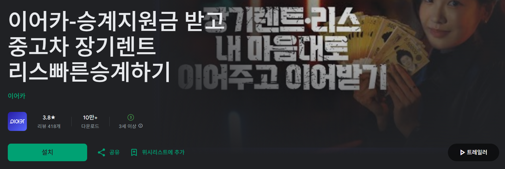 4. 장기렌트카 비교견적앱: 이어카 - 승계지원금 받고 빠른 승계