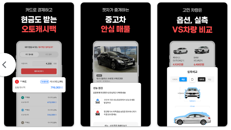 - 겟차 오토캐시백: 차량 카드 결제 시 국내 최대 캐시백 혜택 제공