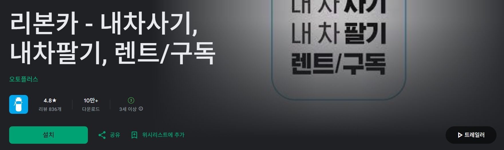 3.신차 장기렌트 가격비교 어플: 리본카 - 내차사기, 내차 팔기
