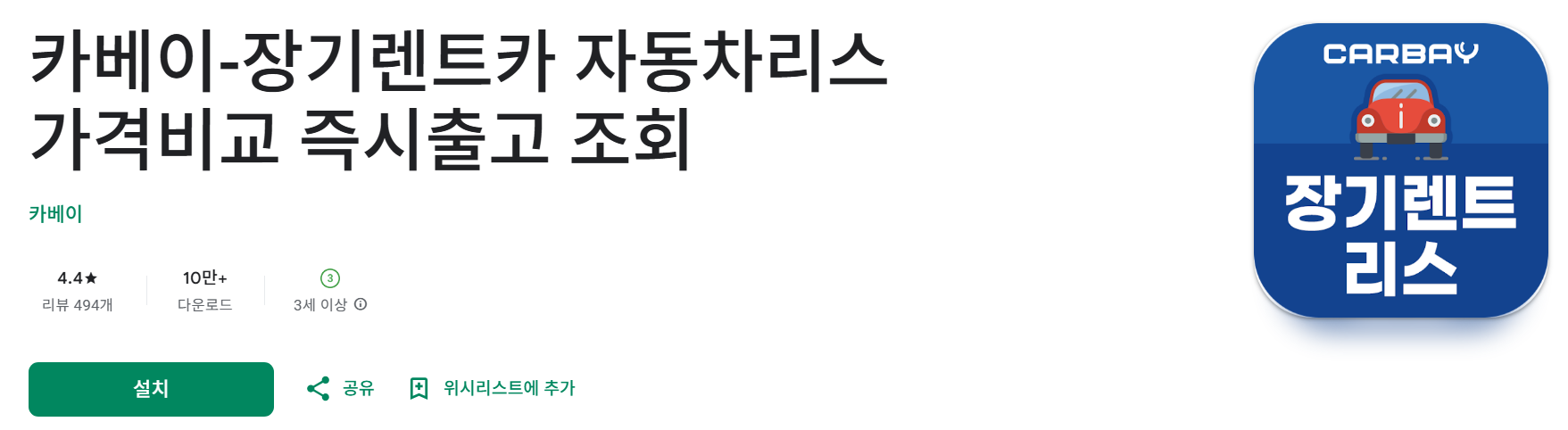 7. 신차 장기렌트 가격비교 어플: 카베이 가격비교 즉시출고 조회