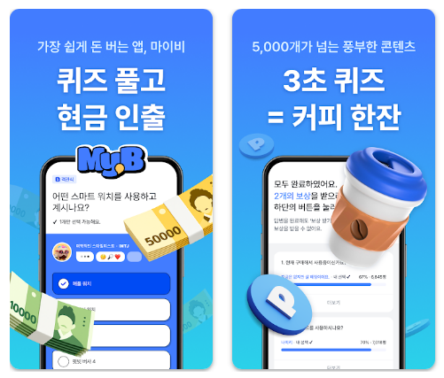 MyB 마이비는 간단한 퀴즈를 풀면서 리워드를 받을 수 있는 앱테크 서비스입니다. 퀴즈를 통해 재미있게 지식을 쌓을 수 있으며, 누구나 쉽게 참여할 수 있는 구조로 일상 속에서 부담 없이 활용할 수 있습니다,
