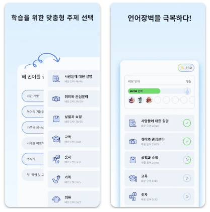 - 토픽별 학습: 다양한 주제에서 필요한 단어와 표현 선택 가능.