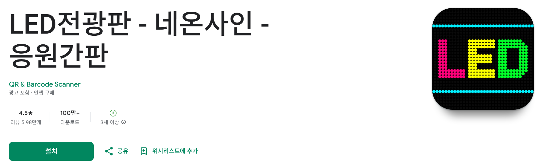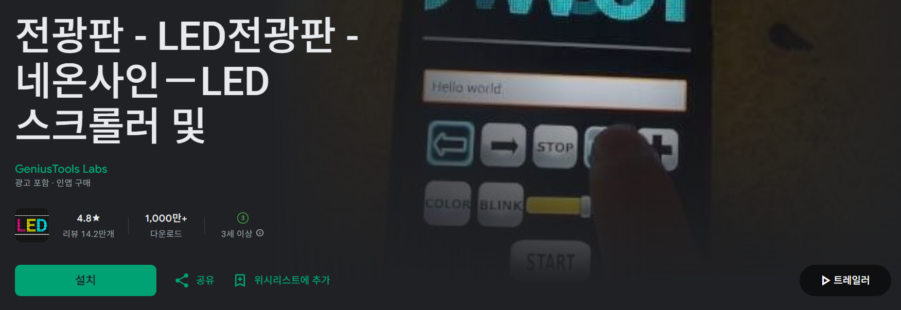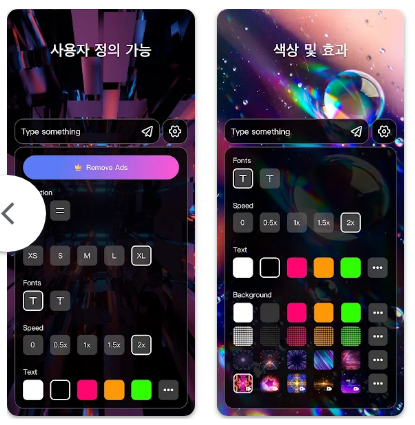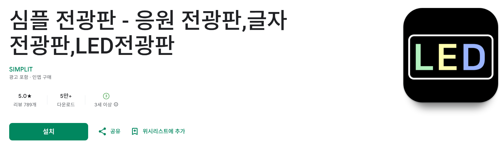 스마트폰 화면을 강력한 전광판으로 바꿔주는 이 앱은 콘서트나 행사, 광고판 대용으로 많이 활용됩니다. 직관적인 조작 방식을 통해 문구 입력과 효과 설정이 간단하며, 초보자도 쉽게 화려한 LED 텍스트를 만들 수 있습니다. 네온 느낌의 화려한 효과는 특히 어두운 공간이나 야외에서 탁월한 가시성을 제공해 시선을 단번에 사로잡습니다.