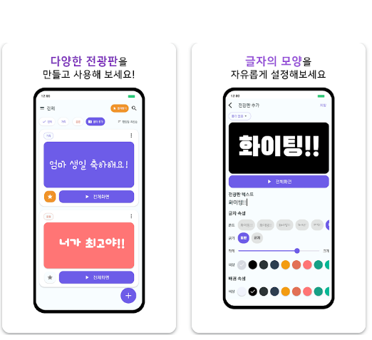 - 글자·배경 색상 변경: 원하는 색 조합으로 개성 있는 전광판 제작 가능